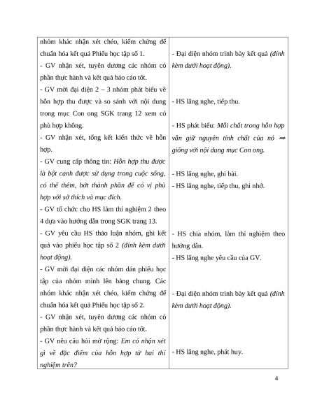gì về đặc điểm của hỗn hợp từ hai thí - HS lắng nghe, phát huy. nghiệm trên? 4