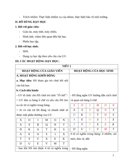 - Việc làm giúp bảo vệ môi trường đất. 2. Năng lực: