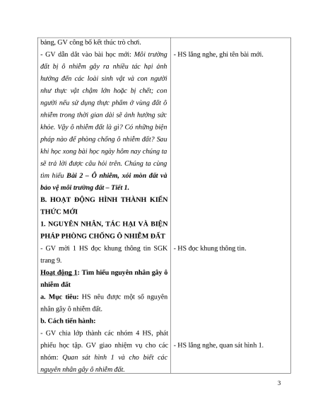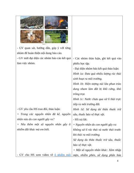 a. Mục tiêu: HS nêu được một số nguyên nhân gây ô nhiễm đất. b. Cách tiến hành: