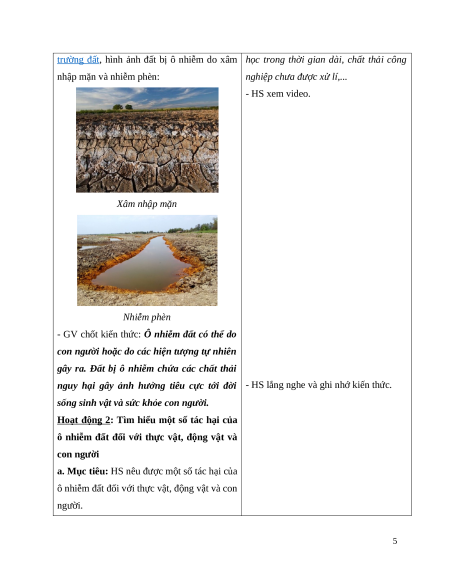 Giáo án Bài 2 Khoa học lớp 5 Kết nối tri thức: Ô nhiễm, xói mòn đất và bảo vệ môi trường đất
