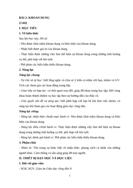 BÀI 2: KHOAN DUNG (3 tiết) I. MỤC TIÊU 1. Về kiến thức