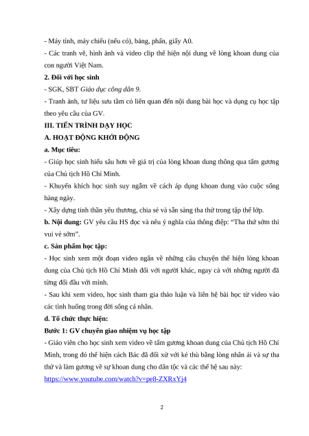 Giáo án Bài 2: Khoan dung Giáo dục công dân 9 Chân trời sáng tạo