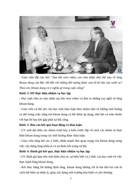 - Giáo viên cho học sinh xem video về tấm gương khoan dung của Chủ tịch Hồ Chí