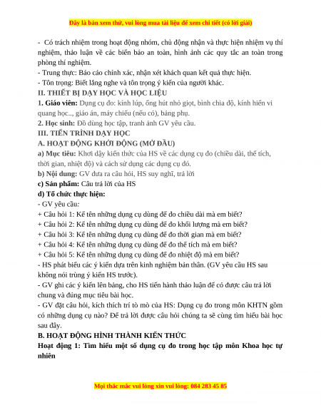 - GV dẫn dắt: Dụng cụ đo trong môn KHTN chính