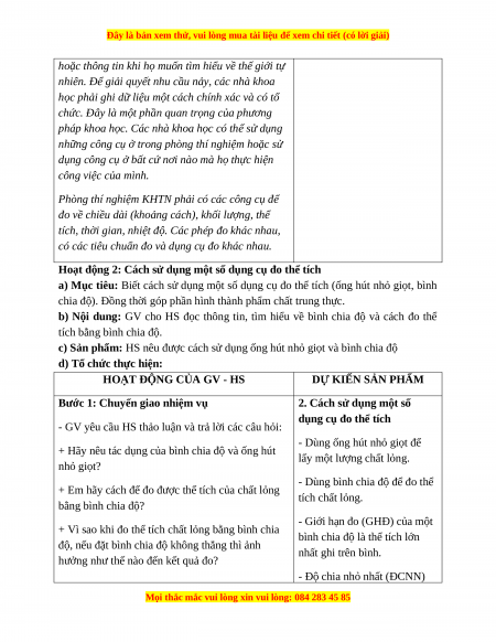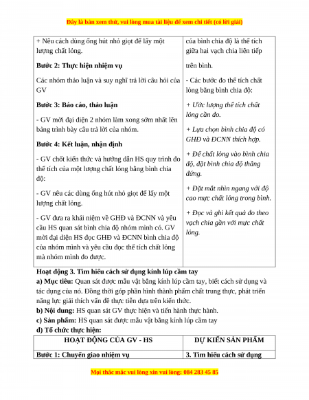 1. Giáo viên: Dụng cụ đo: kính lúp, ống hút nhỏ giọt, bình chia độ, kính hiển vi