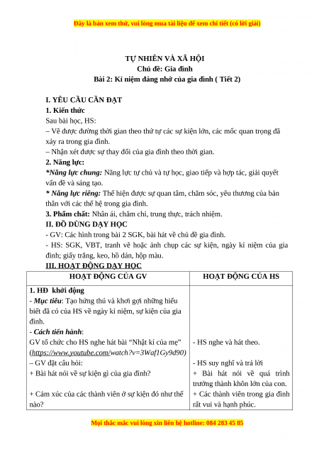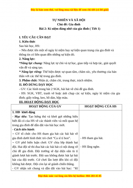 Giáo án Bài 2: Kỉ niệm đáng nhớ của gia đình Tự nhiên và xã hội lớp 3 Chân trời sáng tạo