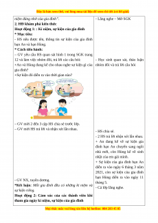 - HS nêu được tên, thông tin sự kiện của gia đình