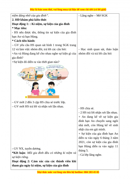 - HS nêu được tên, thông tin sự kiện của gia đình bạn An và bạn Hùng. * Cách tiến hành: