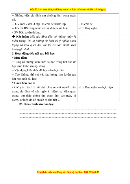 – Nêu được tên một số ngày kỉ niệm hay sự kiện quan trọng của gia đình và