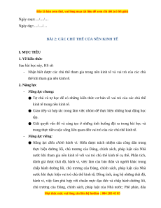 BÀI 2: CÁC CHỦ THỂ CỦA NỀN KINH TẾ I. MỤC TIÊU 1. Về kiến thức Sau bài học này, HS sẽ: