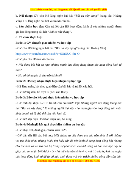 b. Nội dung: GV cho HS lắng nghe bài hát “Bài ca xây dựng” (sáng tác: Hoàng