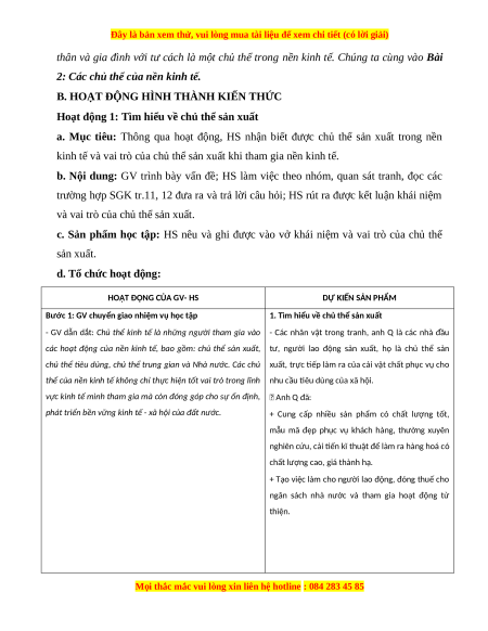 Hoạt động 1: Tìm hiểu về chủ thể sản xuất