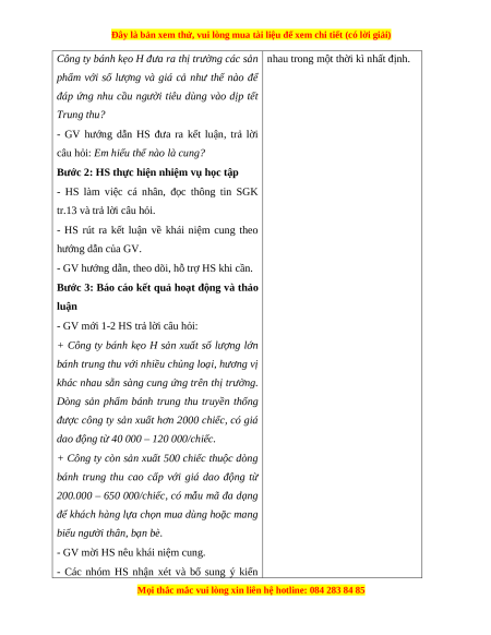 - GV yêu cầu HS làm việc cá nhân, đọc Cung là số lượng hàng hóa, dịch