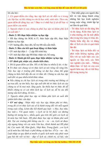 1. Có quan điểm cho rằng, học tập lịch sử chỉ diễn ra ở trong kết và vận dụng thành công