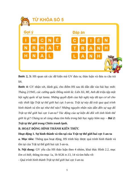 BÀI 2: TRẬT TỰ THẾ GIỚI TRONG CHIẾN TRANH LẠNH (2 tiết)