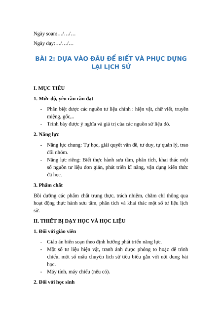 BÀI 2: DỰA VÀO ĐÂU ĐỂ BIẾT VÀ PHỤC DỰNG LẠI LỊCH SỬ I. MỤC TIÊU
