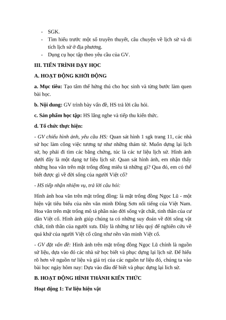- GV đặt vấn đề: Hình ảnh trên mặt trống đồng Ngọc Lũ chính là nguồn
