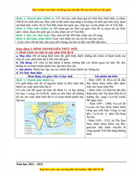 Bài 2: CÁC CUỘC PHÁT KIẾN ĐỊA LÍ (… tiết)