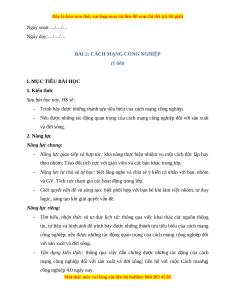 BÀI 2: CÁCH MẠNG CÔNG NGHIỆP (1 tiết)
