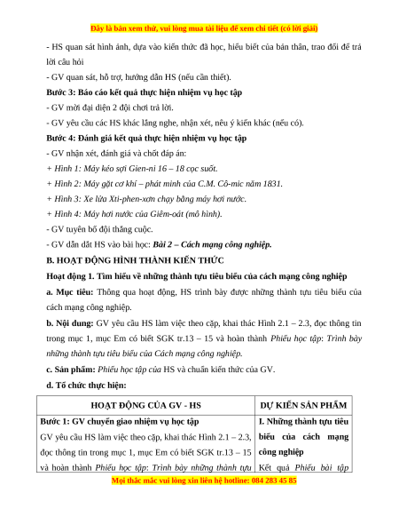 Giáo án Bài 2 Lịch sử 8 Cánh diều (2024): Cách mạng công nghiệp