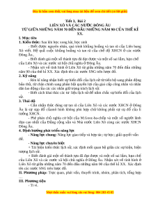 ụ tiêu: Hệ quả cu c ộ kh ng ủ ho ng ả và tan rã c a ủ ch ế đ ộ XHCN ở các nư c ớ Đông Âu. Bi t ế đánh giá m t ộ số thành t u ự đã đ t ạ đư c ợ và m t ộ số sai l m ầ , h n ạ ch c ế a ủ Liên Xô và các nư c ớ xã h i ộ ch nghĩ ủ a Đ ở ông Âu. - Phư ng pháp ơ : Tr c quan, phát ự vấn, thuy t