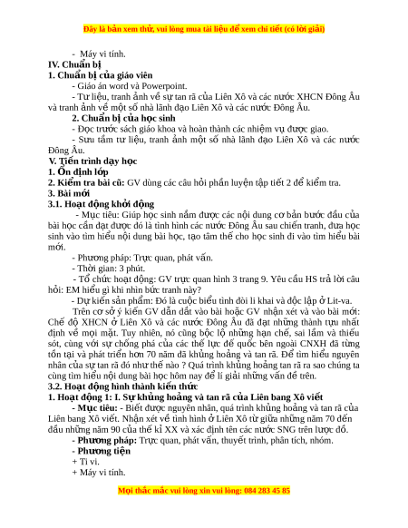 ớ ách giáo khoa và hoàn thành các nhi m ệ v đ ụ ư c ợ giao. - S u ư t m ầ tư li u, ệ tranh nh ả m t ộ số nhà lãnh đ o ạ Liên Xô và các nư c ớ Đông Âu. V. Ti n t ế rình d y h ạ c ọ 1. n đ Ổ nh l ị p ớ 2. Ki m
