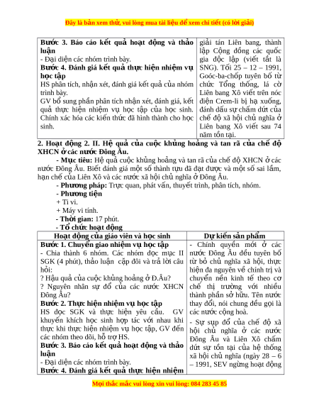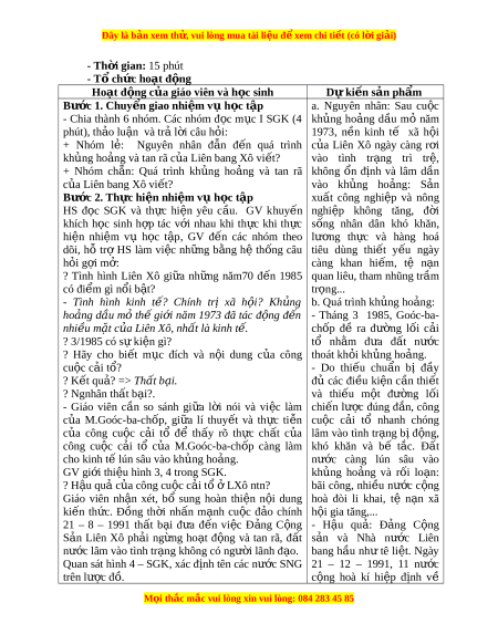 Đây là bản xem th , vu ử i lòng mua tài li u ệ đ xe ể m chi ti t (c ế ó l i ờ gi i ả ) - Th i ờ gian: 15 phút - T ch ổ ức ho t ạ đ ng ộ Hoạt đ ng c ộ a g ủ iáo viên và h c ọ sinh Dự ki n s ế n ph ả m ẩ Bước 1. Chuy n gi ể ao nhi m ệ v h ụ c t ọ p ậ a. Nguyên nhân: Sau cu c ộ