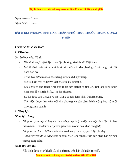 BÀI 2: ĐỊA PHƯƠNG EM (TỈNH, THÀNH PHỐ TRỰC THUỘC TRUNG ƯƠNG) (4 tiết)