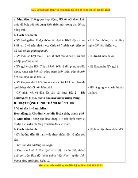 - GV gợi ý cho HS: Chia sẻ hiểu biết về địa phương (địa - HS lắng nghe GV gợi ý.
