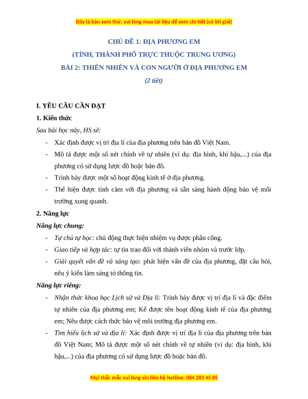 - Thể hiện được tình cảm với địa phương và sẵn sàng hành động bảo vệ môi trường xung quanh. 2. Năng lực