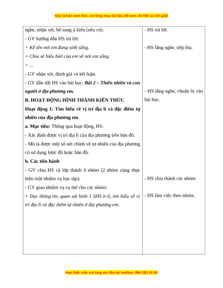 Giáo án Bài 2 Lịch sử & Địa lí lớp 4 Chân trời sáng tạo: Thiên nhiên và con người địa phương