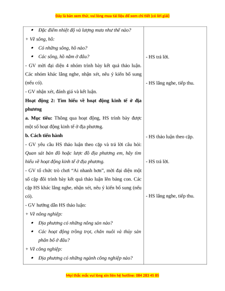 - Trình bày được một số hoạt động kinh tế ở địa phương.