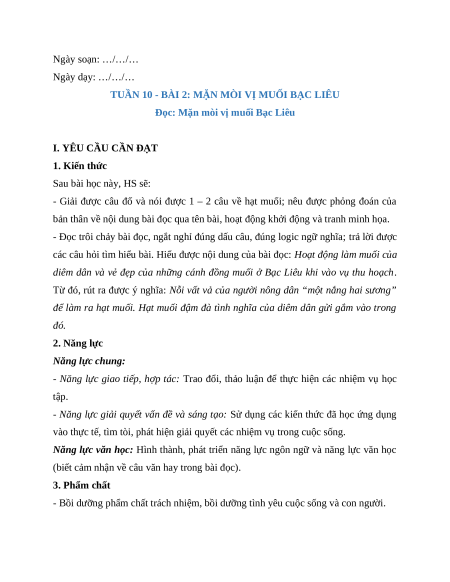 TUẦN 10 - BÀI 2: MẶN MÒI VỊ MUỐI BẠC LIÊU