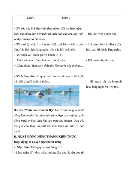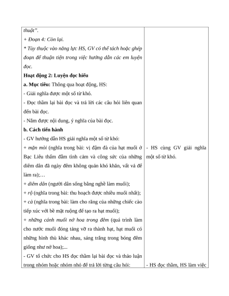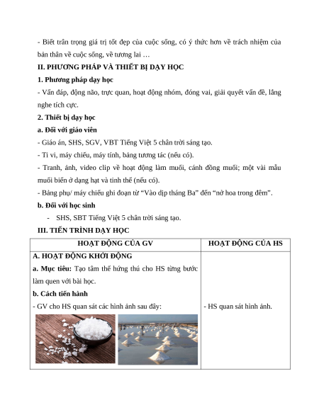 Giáo án Bài 2: Mặn mòi vị muối Bạc Liêu Tiếng Việt lớp 5 Chân trời sáng tạo