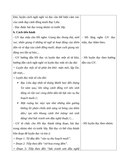- Đọc được bài đọc trong nhóm và trước lớp. b. Cách tiến hành