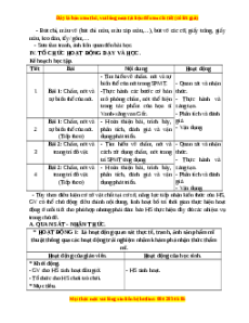 - Phương pháp: Thuyết trình, vấn đáp, gợi mở, trực quan, thực hành sáng tạo, thảo
