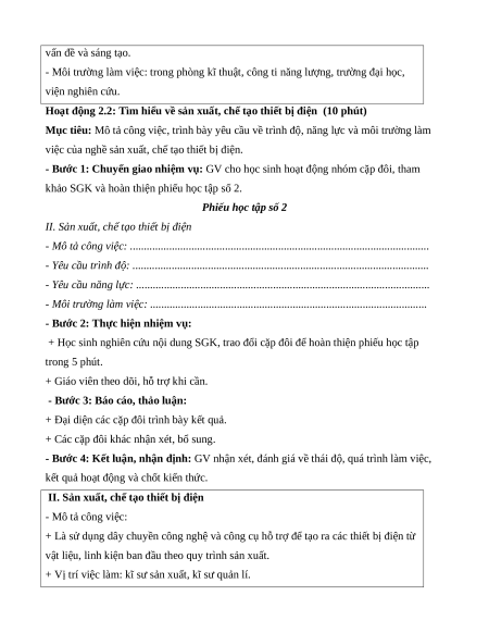 Hoạt động 2.2: Tìm hiểu về sản xuất, chế tạo thiết bị điện (10 phút)