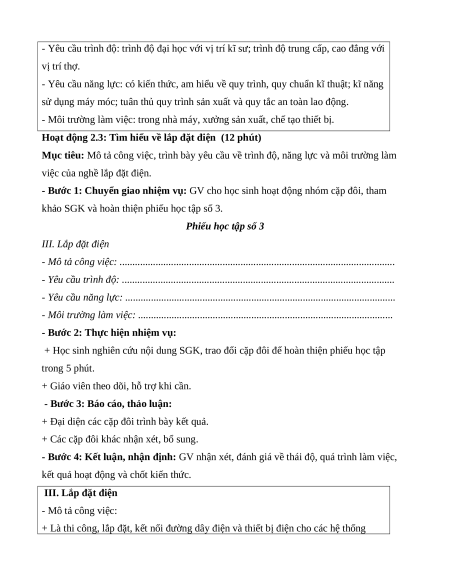 Tiết 3. Ngành nghề trong lĩnh vực kĩ thuật điện (tiết 1)