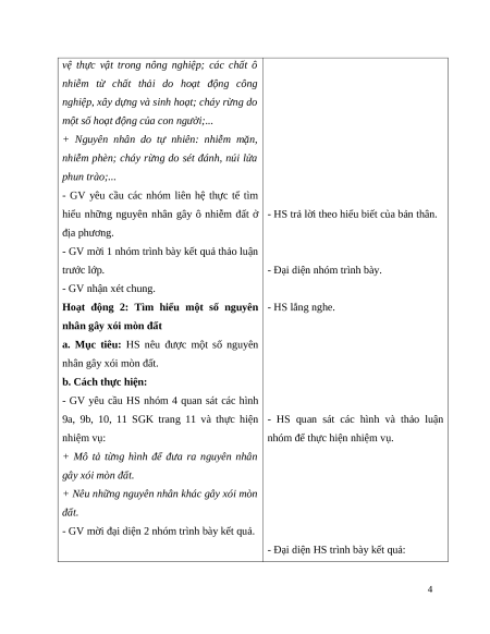 mòn đất, từ đó biết cách vận dụng bảo vệ môi trường đất trong cuộc sống.