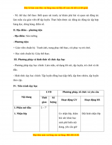 - Phương pháp dạy học chính: Làm mẫu, sử dụng lời nói, tập luyện, trò chơi và thi đấu.
