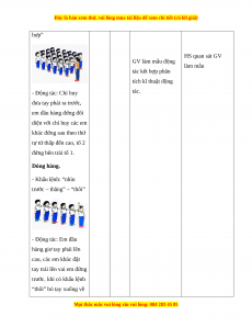 - NL vận động cơ bản: Biết khẩu lệnh và thực hiện được các động tác tập hợp hàng