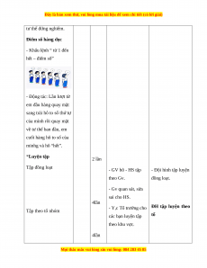 Phương pháp, tổ chức và yêu cầu Nội dung Thời Số Hoạt động GV Hoạt động HS gian lượng I. Phần mở đầu 5 – 7’ 1. Nhận lớp Gv nhận lớp, thăm Đội hình nhận lớp hỏi sức khỏe học sinh phổ biến nội dung, yêu cầu giờ