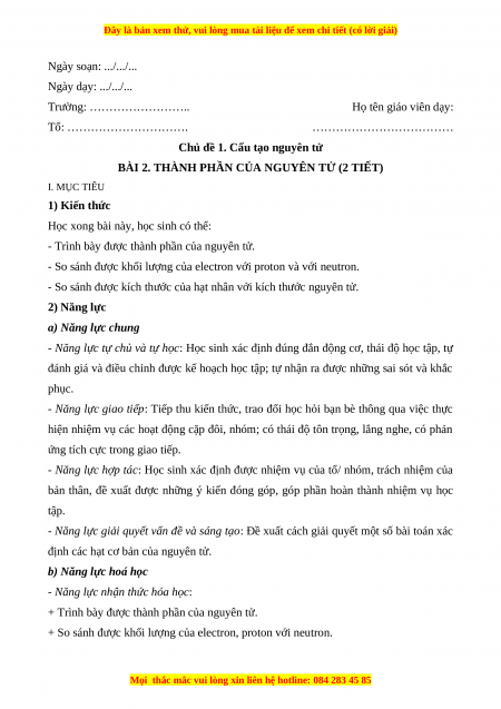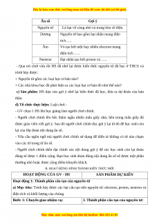 BÀI 2. THÀNH PHẦN CỦA NGUYÊN TỬ (2 TIẾT) I. MỤC TIÊU 1) Kiến thức