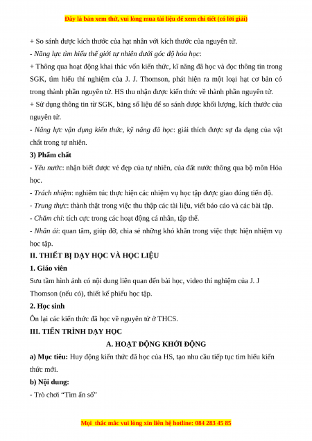 - So sánh được kích thước của hạt nhân với kích thước nguyên tử. 2) Năng lực