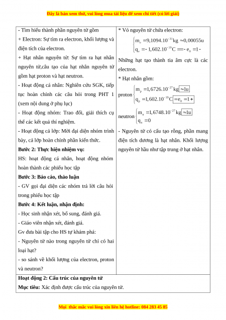 a) Mục tiêu: Trình bày được các hạt cấu tạo nên nguyên tử: electron, proton, neutron và