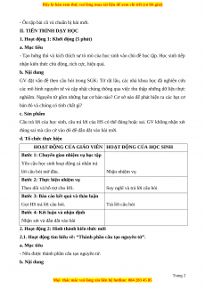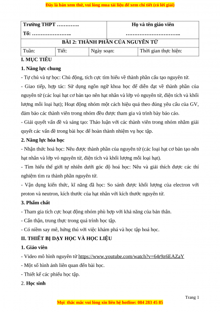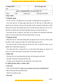 BÀI 2: THÀNH PHẦN CỦA NGUYÊN TỬ Tuần: Tiết: Ngày soạn: Thời gian thực hiện: I. MỤC TIÊU 1. Năng lực chung