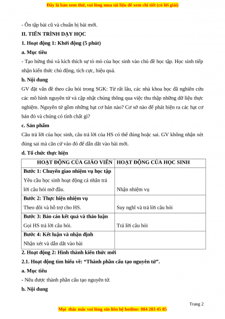 - Nêu được thành phần cấu tạo nguyên tử. b. Nội dung Trang 2