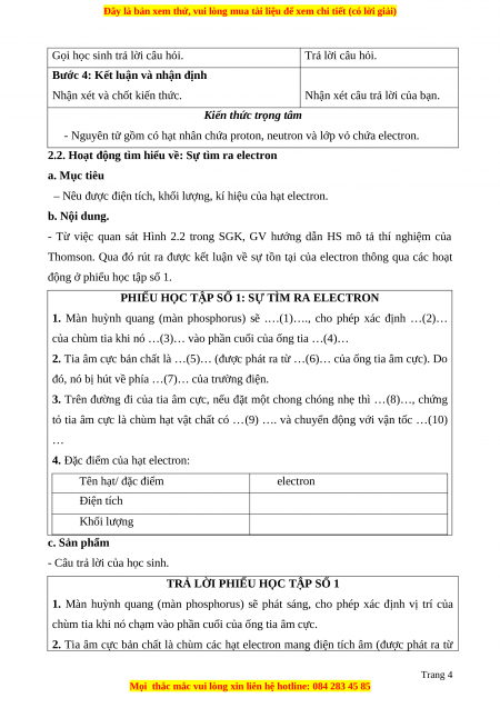 PHIẾU HỌC TẬP SỐ 1: SỰ TÌM RA ELECTRON