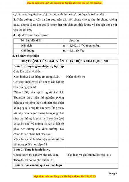 – Nêu được điện tích, khối lượng, kí hiệu của hạt electron. b. Nội dung.