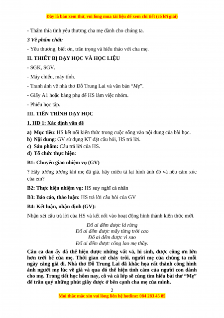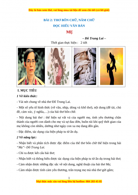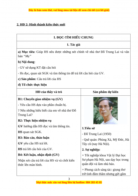 a) Mục tiêu: Giúp HS nêu được những nét chính về nhà thơ Đỗ Trung Lai và văn bản “Mẹ” b) Nội dung: